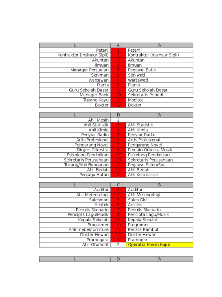 dimulai dari nomor 1 untuk pekerjaan yang paling Anda sukai dan seterusnya